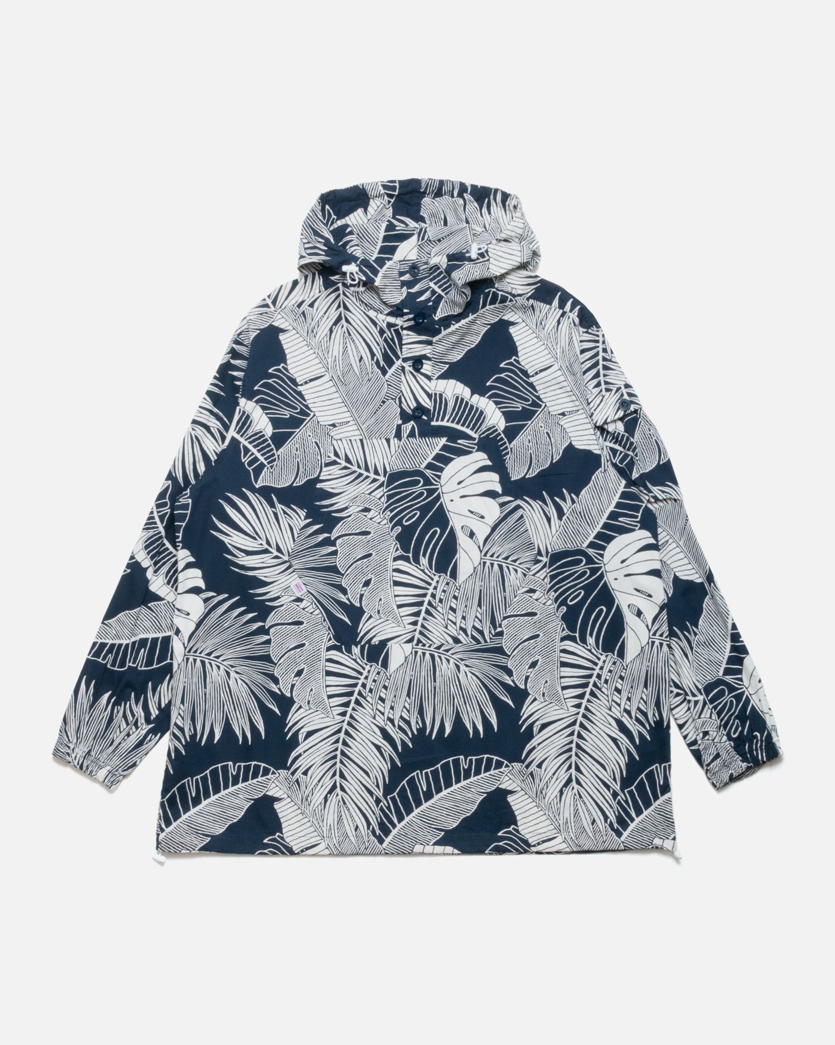 ボタニカル柄がダイナミックに映えるコットンプルオーバーフーディ。実用的な前ポケットとドローコード付きフードで、機能性も兼ね備えています。ユニセックスシルエットだから、性別や体型を選ばず愛用できる一枚です。快適な着心地と洗練されたデザインが日常使いに最適です。