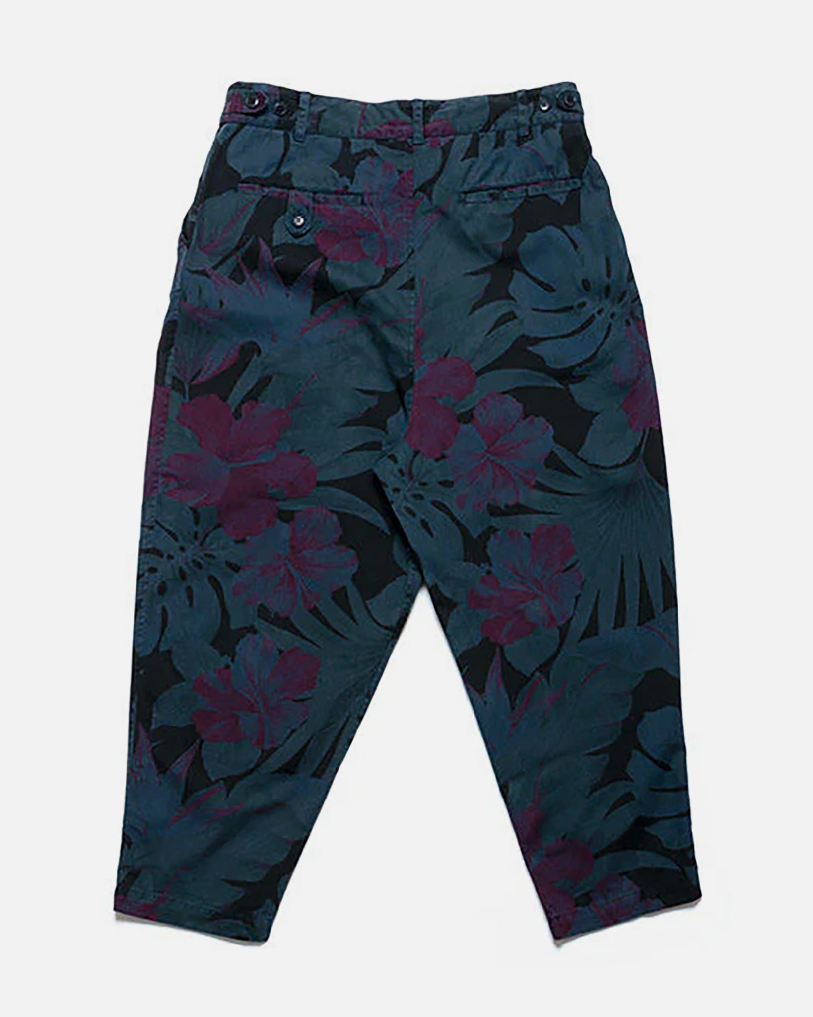 OVERDYEDのラップパンツ。フロントジップ仕様。ウェストサイドにタブがついていて、アジャストができます。フロントもボタン位置が2箇所調整でき、表示のサイズからマイナス5~6cm程度は絞れます。